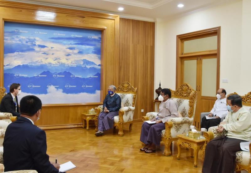 အဂတိလိုက်စားမှုတိုက်ဖျက်ရေးကော်မရှင် ဥက္ကဋ္ဌ ဦးအောင်ကြည်သည် မြန်မာနိုင်ငံ ဆိုင်ရာ UNODC ၏ Country Manager အဖြစ် ခန့်အပ်ခြင်းခံရသည့် Mr. Benedikt Hofmann အား ယနေ့ မွန်းလွဲ ၂ နာရီခွဲတွင် နေပြည်တော်ရှိ အဂတိလိုက်စားမှု တိုက်ဖျက်ရေးကော်မရှင်ရုံး၊ ဧည့်ခန်းမ၌ လက်ခံတွေ့ဆုံသည်။