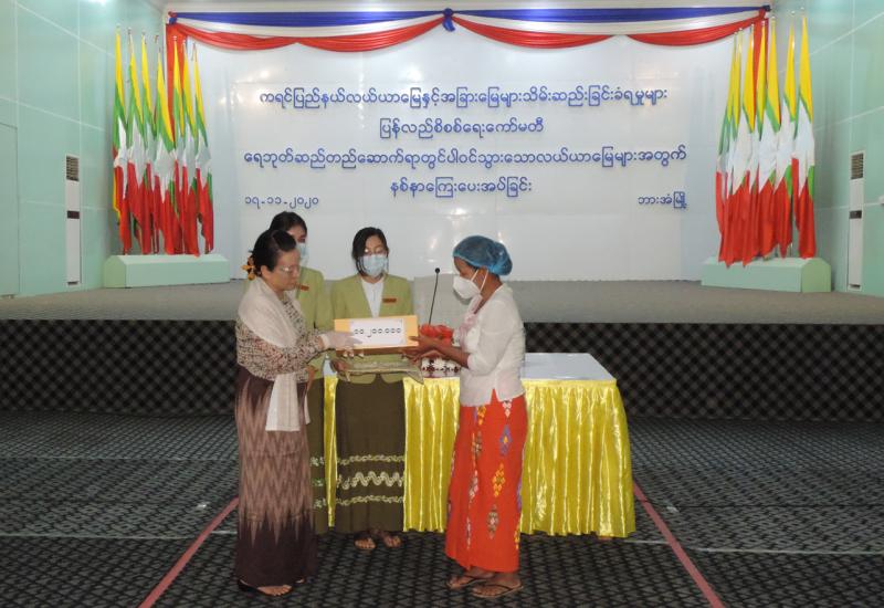 ရန်ကုန်တိုင်းဒေသကြီးအတွင်း ကိုဗစ်-၁၉ ရောဂါကာကွယ်ခြင်း လုပ်ငန်းများ၌ ပါဝင်ဆောင်ရွက်ရန် သွားရောက်ကြမည့် ရှမ်းပြည်နယ် (တောင်ပိုင်း)မှ ကြက်ခြေနီစေတနာ့ လုပ်အားရှင်များအား ထောက်ပံ့ငွေပေးအပ်ခြင်းကို ယမန်နေ့ ညနေ(၃)နာရီက တောင်ကြီးမြို့ ရှမ်းပြည်နယ်အစိုးရအဖွဲ့ရုံး အစည်း အဝေးခန်းမ၌ ကျင်းပသည်။