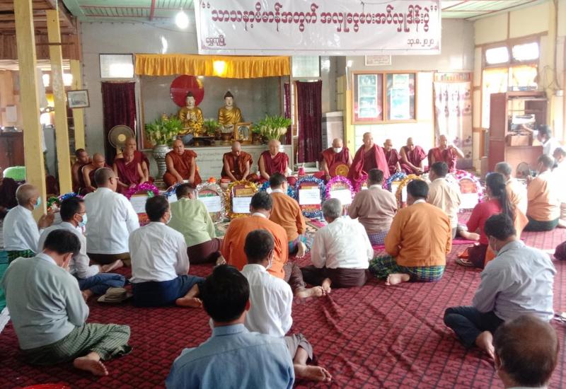 ကချင်ပြည်နယ်၊ ဗန်းမော်ခရိုင်၊ ရွှေကူမြို့၌ သာသနာ့ဗိမာန်အတွက် အလှူငွေပေးအပ်လှူဒါန်းခြင်းနှင့် ဝါဆိုသင်္ကန်း ဆက်ကပ်ခြင်း အခမ်းအနားကို ယနေ့နံနက် ၁၀ နာရီတွင် မြဝတီကျောင်းတိုက်၌ ကျင်းပပြုလုပ်ခဲ့ရာ ကချင်ပြည်နယ် အစိုးရအဖွဲ့ ဗမာတိုင်းရင်းသား လူမျိုးရေးရာဝန်ကြီးဌာန ဝန်ကြီး ဦးခင်မောင်မြင့် (ခ) ဦးဒိတ်နှင့် ရှမ်းတိုင်းရင်းသား လူမျိုးရေးရာဝန်ကြီးဌာန ဦးစိုင်းစိန်လင်းတို့ တက်ရောက်ခဲ့ကြောင်း သိရသည်။