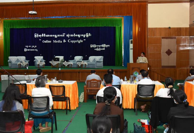 အွန်လိုင်းမီဒီယာနှင့် မူပိုင်ခွင့်ဆိုင်ရာခေါင်းစဉ်ဖြင့် မြန်မာ့မီဒီယာအရွေ့အပေါ် သုံးသပ် ဆွေးနွေးပွဲကို ယနေ့နံနက် ၁၀ နာရီတွင် နေပြည်တော်ရှိ ပြန်ကြားရေးဝန်ကြီးဌာန စုပေါင်း ခန်းမ၌ ကျင်းပသည်။