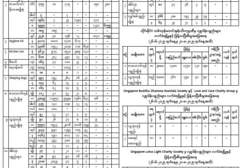 ၂၈-၃-၂၀၂၅ ရက်က လှုပ်ခတ်ခဲ့သော မန္တလေးမြေငလျင်ကြီးကြောင့် နေပြည်တော်ကောင်စီနယ်မြေ၊ စစ်ကိုင်းတိုင်းဒေသကြီး၊ မန္တလေးတိုင်းဒေသကြီး၊ မကွေးတိုင်းဒေသကြီး၊ ရှမ်းပြည်နယ်နှင့် ပဲခူးတိုင်းဒေသကြီးတို့တွင်ထိခိုက် ပျက်စီးမှုများဖြစ်ပေါ်ခဲ့ပြီး ငလျင်ဘေးသင့်ခဲ့သော ပြည်သူများအတွက် ပြည်တွင်း / ပြည်ပစေတနာရှင်၊ အလှူရှင်များ၏ လူသားချင်းစာနာထောက်ထားမှုဆိုင်ရာ အကူအညီပစ္စည်းများ၊ ဆေးဝါးများလှူဒါန်းထောက်ပံ့မှုနှင့် ဘေးသင့်ဒေသများသို့ ဖြန့်ခွဲထောက်ပံ့ဆောင်ရွက်မှုများကို သတင်းထုတ်ပြန်လျက်ရှိရာ ၂၀၂၅ ခုနှစ်၊ ဇွန်လ ၂၃ ရက်နေ့အထိ အခြေအနေကို ၂၅-၆-၂၀၂၅ ရက်နေ့တွင် ထုတ်ပြန်ခဲ့ပြီးဖြစ်ပါသည်။