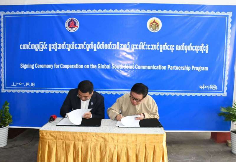 မြန်မာ့ပုံရိပ်ဖော်ညွှန်းရေးအဖွဲ့ (Myanmar Narrative Think Tank) နှင့် ဆင်ဟွာသတင်းဌာနတို့၏ တောင်ကမ္ဘာခြမ်း ပူးတွဲဆက်သွယ်ဆောင်ရွက်မှု မိတ်ဖက်အစီအစဉ် ပူးပေါင်းဆောင်ရွက်ရေး လက်မှတ်ရေးထိုးပွဲအခမ်းအနားကို ယနေ့နံနက်ပိုင်းက ရန်ကုန်မြို့၊ ကျောက်တံတားမြို့နယ်၊ ပန်းဆိုးတန်းလမ်း၊ အမှတ်(၂၂-၂၄)ရှိ သုတေသနနှင့်သတင်းအချက်အလက်ဌာနခွဲ(ရန်ကုန်) အစည်းအဝေးခန်းမ၌ ကျင်းပပြုလုပ်ခဲ့သည်။
