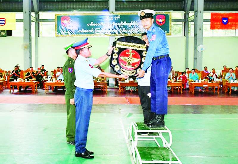 ၂၀၂၅ ခုနှစ် တပ်မတော်ကာကွယ်ရေးဦးစီးချုပ် တံခွန်စိုက်ဒိုင်း တပ်မတော် (ကြည်း၊ ရေ၊ လေ) ပိုက်ကျော်ခြင်းပြိုင်ပွဲ ဗိုလ်လုပွဲနှင့် ဆုပေးပွဲကို ယနေ့နံနက်ပိုင်းတွင် အလယ်ပိုင်းတိုင်းစစ်ဌာနချုပ် မိတ္ထီလာတပ်နယ်ရှိ တပ်နယ်အားကစားခန်းမ၌ ပြုလုပ်ရာ အလယ်ပိုင်းတိုင်းစစ်ဌာနချုပ်နှင့် မိတ္ထီလာတပ်နယ်မှ တာဝန်ရှိသူများ၊ အရာရှိ၊ စစ်သည်၊ မိသားစုဝင်များ၊ ဒိုင်အဖွဲ့ဝင်များနှင့် ပြိုင်ပွဲဝင်အားကစားသမားများ တက်ရောက်ကြသည်။