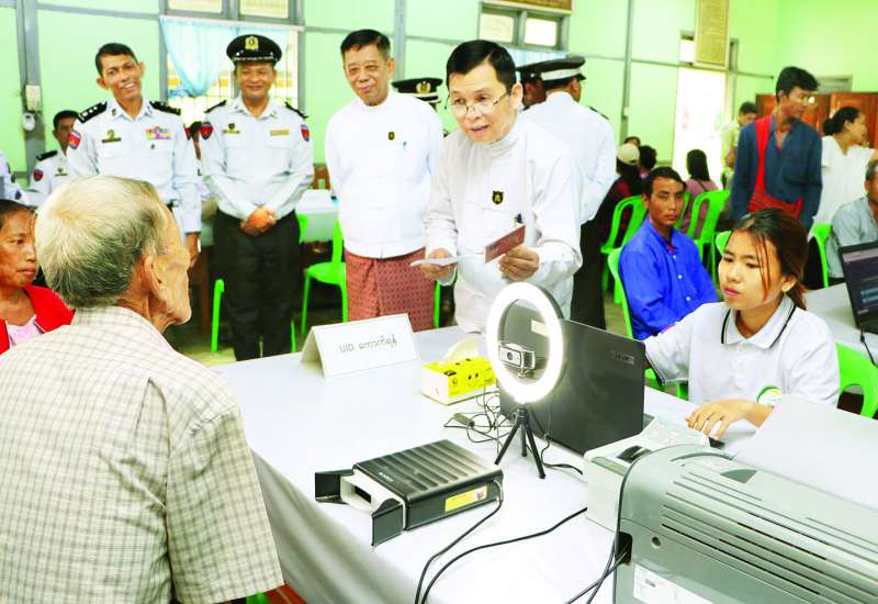 လူဝင်မှုကြီးကြပ်ရေးနှင့်ပြည်သူ့အင်အားဝန်ကြီးဌာန ပြည်ထောင်စုဝန်ကြီး ဦးမြင့်ကြိုင်သည် ဒုတိယဝန်ကြီး ဦးဌေးလှိုင်နှင့်အတူ ယနေ့နံနက်ပိုင်းက နေပြည်တော်ကောင်စီနယ်မြေ လယ်ဝေးမြို့နယ် မြို့နယ်ဦးစီးမှူးရုံးသို့ သွားရောက်၍ ရုံးဝင်းအတွင်း၌ ဝန်ထမ်းများက အိမ်ထောင်စုလူဦးရေစာရင်းနှင့် နိုင်ငံသားစိစစ်ရေးကတ်ပြား ပျက်စီး/ပျောက်ဆုံးသွားသည့် ဒေသခံပြည်သူများနှင့် နိုင်ငံသားစိစစ်ရေးကတ်ပြားမရရှိသေးသူများကို ပန်းခင်းစီမံချက် အဆင့် (၃) ဖြင့် ဆောင်ရွက်ပေးနေမှုကို ကြည့်ရှုအားပေးသည်။