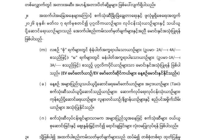စက်သုံးဆီ ခြိုးခြံချွေတာသုံးစွဲရေးအတွက် ပြည်သူသို့ အသိပေးကြေညာချက်