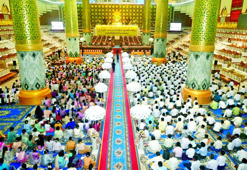 ရန်ကုန်တိုင်းဒေသကြီးအစိုးရအဖွဲ့က ကြီးမှူး ကျင်းပသည့် ၂၀၂၆ ခုနှစ် သာသနာတော်ဆိုင်ရာ ဘွဲ့တံဆိပ်တော်ရ ဆရာတော်ကြီးများ၊ သီလရှင်ဆရာကြီးများနှင့် လူပုဂ္ဂိုလ်များအား သာသနာတော်ဆိုင်ရာဘွဲ့တံဆိပ်တော်များ ဆက်ကပ်ချီးမြှင့်အပ်နှင်းပွဲကို ယနေ့မွန်းလွဲ ၁ နာရီတွင် ရန်ကုန်မြို့ သီရိမင်္ဂလာ ကမ္ဘာအေးကုန်းမြေရှိ ဆဋ္ဌသင်္ဂါယနာတင် မဟာပါသာဏလိုဏ်ဂူသိမ်တော်ကြီး၌ ကျင်းပသည်။