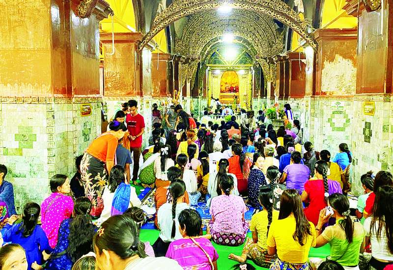 ယနေ့သည် ဗုဒ္ဓဘာသာဝင်များ၏ နေ့ထူးနေ့မြတ် ဝါဆိုလပြည့်နေ့ (ဓမ္မစကြာအခါတော်နေ့) ဖြစ်သည့်အားလျော်စွာ ရွှေတိဂုံစေတီတော်မြတ်ကြီးအပါအဝင် ရန်ကုန်မြို့ရှိ ဘုရား၊ စေတီ၊ ပုထိုးများ၌ ဥပုသ်သီတင်းဆောက်တည်ကြသူများ၊ ကုသိုလ်ကောင်းမှုပြုကြသူ ဘုရားဖူးလာပြည်သူများဖြင့် အထူးစည်ကားလျက်ရှိသည်။