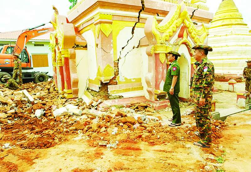 မြန်မာနိုင်ငံတွင် လှုပ်ခတ်ခဲ့သော မန္တလေးငလျင်ကြီးကြောင့် ထိခိုက်ပျက်စီးခဲ့ရသည့်နေရာများ၌ ပြန်လည်ထူထောင်ရေးလုပ်ငန်းများကို အဖွဲ့အစည်းအသီးသီးက ဒေသခံပြည်သူများနှင့်ပူးပေါင်း၍ အင်တိုက်အားတိုက် ကူညီဆောင်ရွက်ပေးလျက်ရှိသည်။