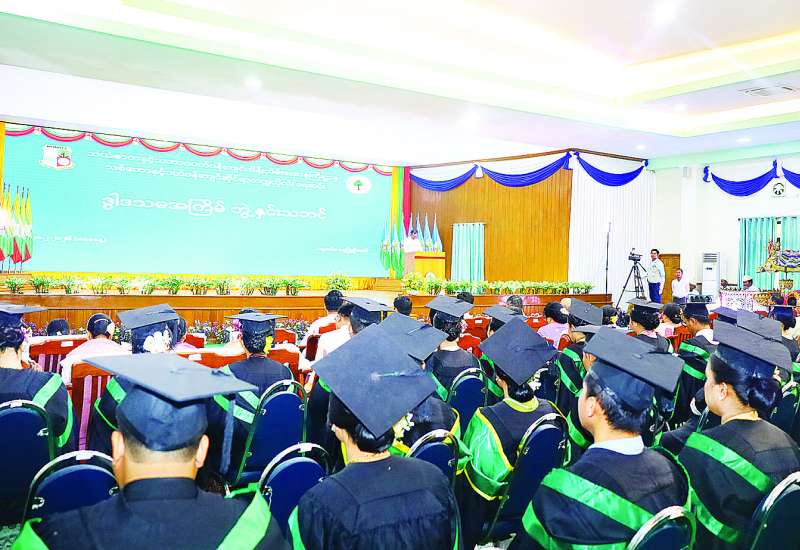 ဒွါဒသမအကြိမ် ဘွဲ့နှင်းသဘင်နှင့် ၂၀၁၉ - ၂၀၂၀ ပညာသင်နှစ်မှ ၂၀၂၄ - ၂၀၂၅ ပညာသင်နှစ်အထိ ဘွဲ့ကြိုပဉ္စမနှစ်များတွင် ပထမ၊ ဒုတိယ၊ တတိယရရှိသူ ဘွဲ့ရမောင်မယ်များအား ဆုချီးမြှင့်ပွဲအခမ်းအနားကို ယနေ့နံနက်ပိုင်းတွင် သစ်တောနှင့်ပတ်ဝန်းကျင်ဆိုင်ရာတက္ကသိုလ် (ရေဆင်း) ဘွဲ့နှင်းသဘင်ခန်းမ၌ ကျင်းပရာ သယံဇာတနှင့်သဘာဝပတ်ဝန်းကျင်ထိန်းသိမ်းရေးဝန်ကြီးဌာန ဒုတိယဝန်ကြီး ဦးမင်းသူ၊ အမြဲတမ်းအတွင်းဝန်၊ ဌာနဆိုင်ရာ တာဝန်ရှိသူများ၊ ပါမောက္ခချုပ်၊ တက္ကသိုလ်ပညာရေးအဖွဲ့ဝင်များ၊ သစ်တောနှင့်ပတ်ဝန်းကျင်ဆိုင်ရာတက္ကသိုလ်မှ ဆရာ ဆရာမများ၊ ဆုရရှိသူများ၊ ဘွဲ့ရမောင်မယ်များနှင့် မိဘများ တက်ရောက်ကြသည်။