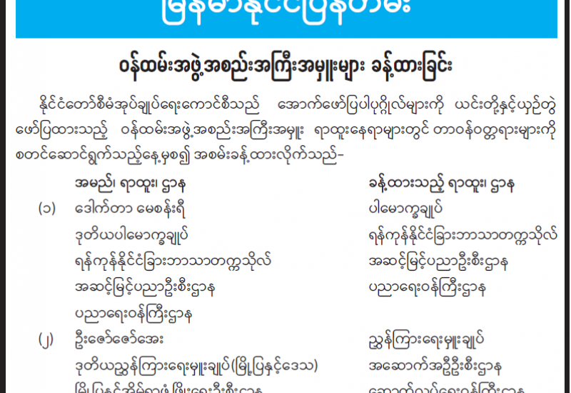 ဝန်ထမ်းအဖွဲ့အစည်းအကြီးအမှူးများ ခန့်ထားခြင်း
