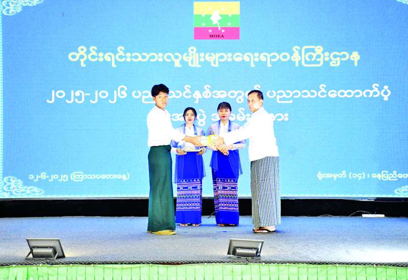 တိုင်းရင်းသားလူမျိုးများရေးရာဝန်ကြီးဌာန ၂၀၂၅-၂၀၂၆ ပညာသင်နှစ်အတွက် ပညာသင်ထောက်ပံ့ကြေးနှင့် စာရေးကိရိယာများ ပေးအပ်ခြင်းအခမ်းအနားကို ယနေ့နံနက်ပိုင်းတွင် အဆိုပါဝန်ကြီးဌာန အစည်းအဝေးခန်းမ၌ကျင်းပရာ ပြည်ထောင်စုဝန်ကြီး ခွန်သန့်ဇော်ထူး၊ ဒုတိယဝန်ကြီး ဦးဇော်အေးမောင်၊ အမြဲတမ်းအတွင်းဝန်၊ ဌာနဆိုင်ရာတာဝန်ရှိသူများ၊ အရာထမ်းများနှင့် ကျောင်းသား ကျောင်းသူများ တက်ရောက်ကြပြီး တိုင်းဒေသကြီး၊ ပြည်နယ်ညွှန်ကြားရေးမှူးရုံးများမှ အရာထမ်း၊ အမှုထမ်းများနှင့် ကျောင်းသား ကျောင်းသူများက အွန်လိုင်းဖြင့် တက်ရောက်သည်။