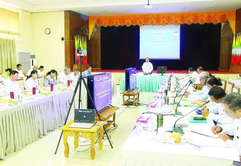 ထိရောက်သည့် အခွန်စနစ်ဖြစ်ပေါ်စေရေးအတွက် ဆောင်ရွက်မည့်အစီအမံများနှင့်စပ်လျဉ်း၍ စီမံချက်ရေးဆွဲပြုစုတင်ပြရေးအစည်းအဝေးကို ယနေ့နံနက်ပိုင်းတွင် နေပြည်တော်ရှိ စီမံကိန်းနှင့် ဘဏ္ဍာရေးဝန်ကြီးဌာနရုံးအမှတ် (၃၂) အစည်းအဝေးခန်းမ၌ကျင်းပရာ စီမံကိန်းနှင့်ဘဏ္ဍာရေးဝန်ကြီးဌာန ဒုတိယဝန်ကြီး ဦးမင်းထွဋ်၊ နေပြည်တော်ကောင်စီဝင်၊ တိုင်းဒေသကြီး၊ ပြည်နယ်များမှ စီးပွားရေးရာဝန်ကြီးများနှင့် ဌာနဆိုင်ရာတာဝန်ရှိသူများ တက်ရောက်ကြသည်။