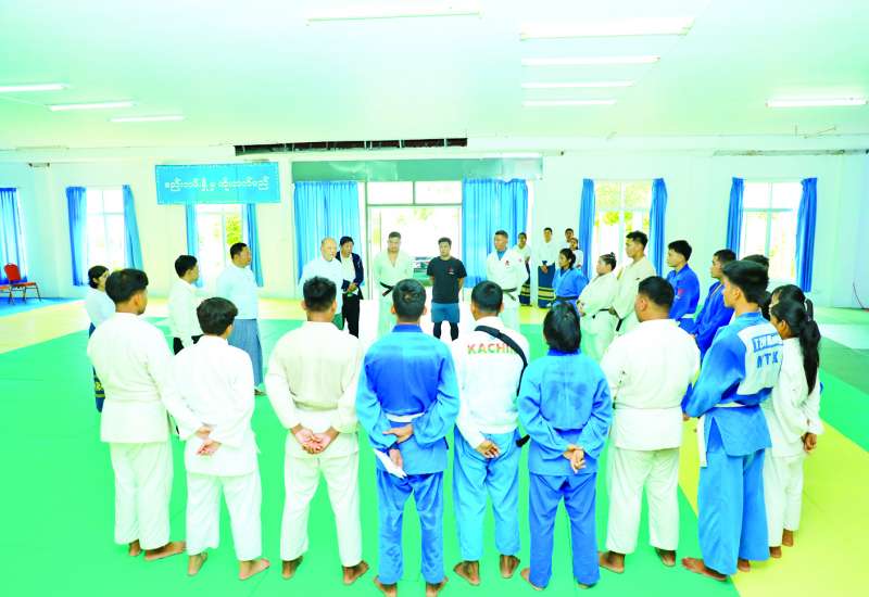 အားကစားနှင့်လူငယ်ရေးရာဝန်ကြီးဌာန ပြည်ထောင်စုဝန်ကြီး Jeng Phang နော်တောင်သည် ဒုတိယဝန်ကြီး ဦးဇင်မင်းထက်နှင့်အတူ ယနေ့နံနက်ပိုင်းတွင် နေပြည်တော်အားကစားလေ့ကျင့်ရေးစခန်း (Gold Camp) နှင့် လူငယ်အားကစားလေ့ကျင့်ရေးစခန်း (Youth Camp) တို့မှ ဂျူဒို၊ အလေးမနှင့် လက်ဝှေ့အားကစားအဖွဲ့များ၏ လေ့ကျင့်နေမှုများကို ကြည့်ရှုအားပေးသည်။