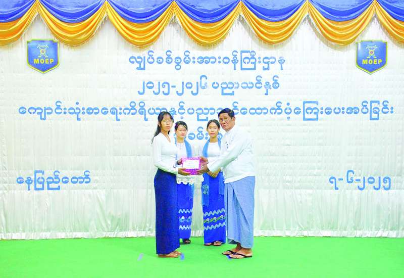 ၂၀၂၅-၂၀၂၆ ပညာသင်နှစ် တက္ကသိုလ်၊ ကောလိပ်နှင့်အခြေခံပညာမူလတန်းမှ အထက်တန်းအဆင့်ကျောင်းများသို့ တက်ရောက်ပညာသင်ကြားလျက်ရှိသည့် နယ်စပ်ရေးရာဝန်ကြီးဌာနမှ ဝန်ထမ်းများ၏ သားသမီးများ ပညာသင်စရိတ်၊ ကျောင်းဝတ်စုံနှင့် ဗလာစာအုပ်များ ပေးအပ်ခြင်းအခမ်းအနားကို ယနေ့နံနက်ပိုင်းတွင် နယ်စပ်ရေးရာဝန်ကြီးဌာန ဧရာဝတီခန်းမ၌ ကျင်းပသည်။