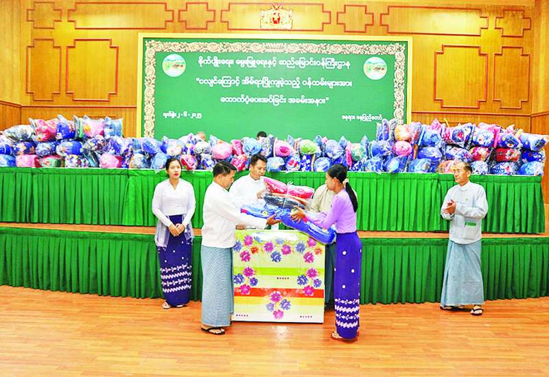 ငလျင်ကြောင့် အိမ်ရာပြိုကျခဲ့သည့် ဝန်ကြီးဌာနအောက်ရှိ ဝန်ထမ်းများအတွက် အဝတ်အထည်နှင့် အသုံးအဆောင်များ ထောက်ပံ့ပေးအပ်ခြင်းအခမ်းအနားကို ယနေ့မွန်းလွဲပိုင်းတွင် စိုက်ပျိုးရေး၊ မွေးမြူရေးနှင့် ဆည်မြောင်းဝန်ကြီးဌာန ပြည်ထောင်စုဝန်ကြီးရုံး စုဝေးဆောင်ခန်းမ၌ ကျင်းပသည်။