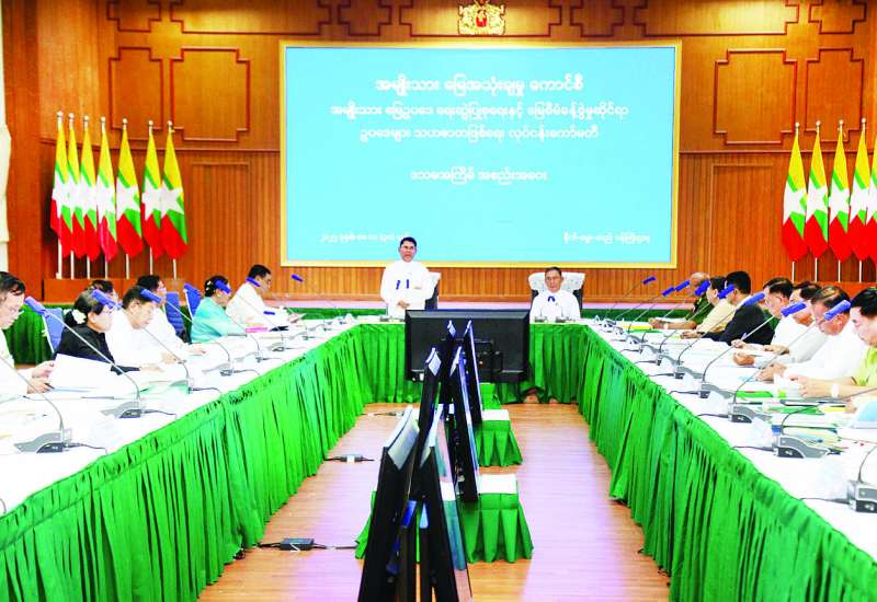 အမျိုးသားမြေဥပဒေရေးဆွဲပြုစုရေးနှင့် မြေစီမံခန့်ခွဲမှုဆိုင်ရာဥပဒေများ သဟဇာတဖြစ်ရေးလုပ်ငန်းကော်မတီ၏ (၁၀) ကြိမ်မြောက် လုပ်ငန်းညှိနှိုင်းအစည်းအဝေးကို ယနေ့မွန်းလွဲပိုင်းက စိုက်ပျိုးရေး၊ မွေးမြူရေးနှင့်ဆည်မြောင်းဝန်ကြီးဌာန ပြည်ထောင်စုဝန်ကြီးရုံး အစည်းအဝေးခန်းမ၌ ကျင်းပသည်။