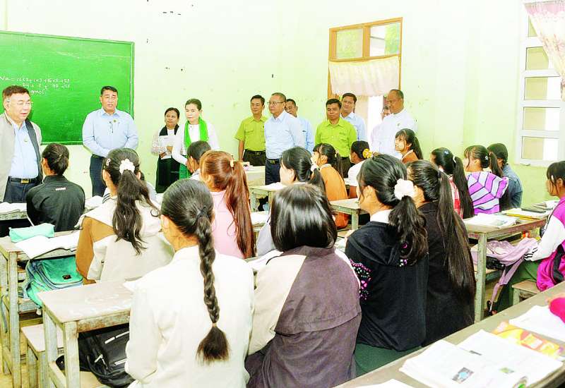 ပညာရေးဝန်ကြီးဌာန ပြည်ထောင်စုဝန်ကြီး ဒေါက်တာညွန့်ဖေသည် ဒုတိယဝန်ကြီး ဦးနေမျိုးလှိုင်၊ အခြေခံပညာဦးစီးဌာနနှင့် အဆင့်မြင့်ပညာဦးစီးဌာနတို့မှ တာဝန်ရှိသူများနှင့်အတူ ယနေ့နံနက်ပိုင်းတွင် ပြင်ဦးလွင်မြို့ အမှတ် (၁) အခြေခံပညာအထက် တန်းကျောင်း၌ ၂၀၂၅ - ၂၀၂၆ ပညာသင်နှစ်အတွက် ကျောင်းသား ကျောင်းသူများ ကျောင်းအပ်နှံနေမှုကို လှည့်လည်ကြည့်ရှုအားပေးသည်။
