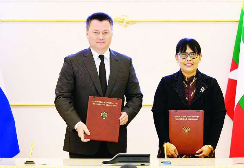 ပြည်ထောင်စုဝန်ကြီးနှင့် ပြည်ထောင်စုရှေ့နေချုပ် ဒေါက်တာသီတာဦး ဦးဆောင်သော မြန်မာကိုယ်စားလှယ်အဖွဲ့သည် ရုရှားဖက်ဒရေးရှင်းနိုင်ငံ တရားရေးဝန်ကြီးဌာနဝန်ကြီး H.E.Mr. Kostantin Chuychenko ၏ ဖိတ်ကြားချက်အရ မေ ၁၉ ရက်မှ ၂၁ ရက်အထိ ရုရှားဖက်ဒရေးရှင်းနိုင်ငံ စိန့်ပီတာဇဘတ်မြို့၌ ရုရှားဖက်ဒရေးရှင်းနိုင်ငံ တရားရေးဝန်ကြီးဌာနကကျင်းပသည့် (၁၃) ကြိမ်မြောက် စိန့်ပီတာဇဘတ် အပြည်ပြည်ဆိုင်ရာ ဥပဒေရေးရာဖိုရမ်၊ နိုင်ငံသားများအား အပြည်ပြည်ဆိုင်ရာ တရားစီရင်ရေးအလွဲသုံးစားပြုလုပ်၍ တရားစီရင်ခြင်းမှ အပြန်အလှန်အကာအကွယ်ပေးရေးဆိုင်ရာ သဘောတူစာချုပ်ကို လက်မှတ်ရေးထိုးခြင်းအခမ်းအနားနှင့် ရုရှားဖက်ဒရေးရှင်းနိုင်ငံရှေ့နေချုပ် H.E. Mr. IGOR KRASNOV ၏ ဖိတ်ကြားချက်အရ မေ ၂၃ ရက်တွင် ရုရှားဖက်ဒရေးရှင်းနိုင်ငံ မော်စကိုမြို့၌ ရုရှားဖက်ဒရေးရှင်းနိုင်ငံ ရှေ့နေချုပ်ရုံးကကျင်းပသည့် နှစ်နိုင်ငံအစည်းအဝေး၊ နိုင်ငံသားများအား အပြည်ပြည်ဆိုင်ရာတရားစီရင်ရေး အလွဲသုံးစားပြုလုပ်၍ တရားစီရင်ခြင်းမှ အပြန်အလှန်အကာအကွယ်ပေးရေးဆိုင်ရာ သဘောတူစာချုပ်၏ လုပ်ထုံးလုပ်နည်းများဆိုင်ရာ နောက်ဆက်တွဲ စာချုပ်လက်မှတ်ရေးထိုးခြင်းအခမ်းအနား၊ နှစ်နိုင်ငံဥပဒေရေးရာ ကျွမ်းကျင်သူများဆိုင်ရာ အလုပ်ရုံဆွေးနွေးပွဲသို့ တက်ရောက်ခဲ့သည်။