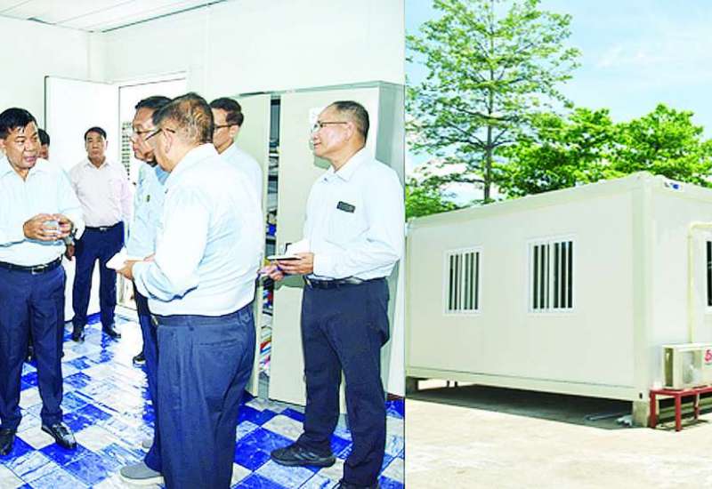 လျှပ်စစ်စွမ်းအားဝန်ကြီးဌာန ပြည်ထောင်စုဝန်ကြီး ဦးဉာဏ်ထွန်းသည် ဒုတိယဝန်ကြီး ဦးအေးကျော်နှင့်အတူ ယနေ့နံနက်ပိုင်းတွင် ဥတ္တရသီရိမြို့နယ်ရှိ နေပြည်တော်ဗဟိုသင်တန်းကျောင်းဝင်းအတွင်း ဝန်ကြီးဌာနမှ ငလျင်ဘေးသင့်ဝန်ထမ်းများနှင့် ဝန်ထမ်းမိသားစုများ ယာယီပြောင်းရွှေ့နေထိုင်နိုင်ရန်အတွက် Container House များ တည်ဆောက်နိုင်ရန်ပစ္စည်းများ ရောက်ရှိမှု၊ တပ်ဆင်တည်ဆောက်နေမှုအခြေအနေကို သွားရောက်ကြည့်ရှုစစ်ဆေးသည်။