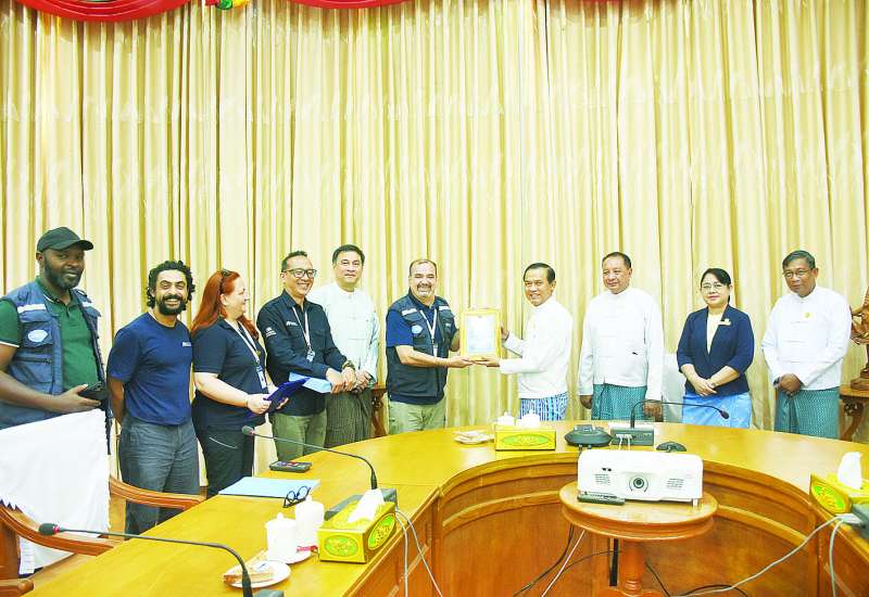 အရေးပေါ်ကျန်းမာရေးစောင့်ရှောက်မှုလုပ်ငန်းများ ပြီးဆုံး၍ ပြန်လည်ထွက်ခွာမည့် အမေရိကန်အခြေစိုက် International Medical Corps (IMC)အရေးပေါ်ဆေးအဖွဲ့အား ဂုဏ်ပြုနှုတ်ဆက်ပွဲအခမ်းအနားကို ယနေ့နံနက်ပိုင်းတွင် ကျန်းမာရေးဝန်ကြီးဌာန အစည်းအဝေးခန်း၌ ကျင်းပရာ ကျန်းမာရေးဝန်ကြီးဌာန ဒုတိယဝန်ကြီး ဒေါက်တာအေးထွန်းက အမျိုးသားသဘာဝဘေးအန္တရာယ်ဆိုင်ရာစီမံခန့်ခွဲမှုကော်မတီ၏ ကျန်းမာရေးဆပ်ကော်မတီဥက္ကဋ္ဌကိုယ်စား တက်ရောက်သည်။