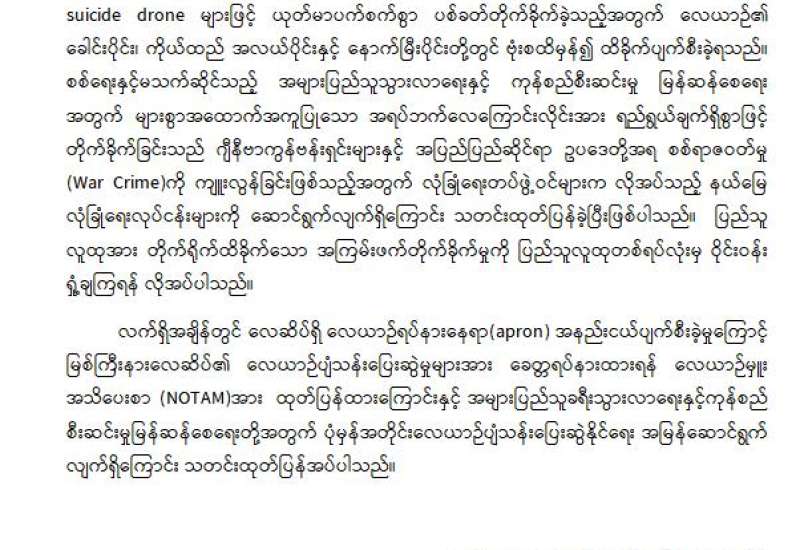 မြစ်ကြီးနားလေဆိပ်တွင် ခရီးသည်တင် လေယာဉ်တစ်စင်း အကြမ်းဖက်တိုက်ခိုက်ခံရမှုနှင့် ပတ်သက်၍ နောက်ဆက်တွဲ သတင်းထုတ်ပြန်ချက်