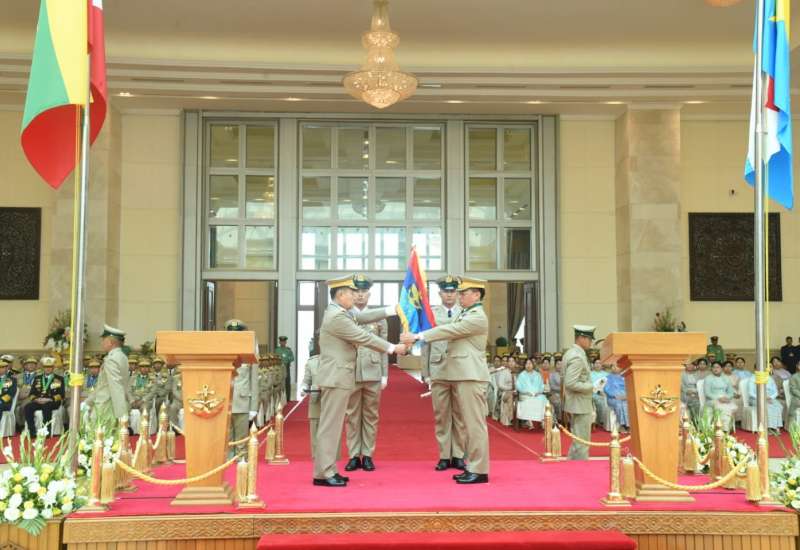 ပြည်ထောင်စုသမ္မတမြန်မာနိုင်ငံတော်၊ မြန်မာ့တပ်မတော်၏ တပ်မတော်ကာကွယ်ရေးဦးစီးချုပ် တာဝန်လွှဲပြောင်းလက်ခံခြင်း ဂုဏ်ပြုစစ်ရေးပြအခမ်းအနားကို ယနေ့နံနက်ပိုင်းတွင် နေပြည်တော်ရှိ ဇေယျသီရိဗိမာန်၌ ကျင်းပပြုလုပ်သည်။