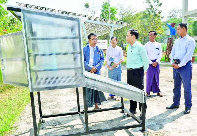 သိပ္ပံနှင့်နည်းပညာဝန်ကြီးဌာန ဒုတိယဝန်ကြီး ဒေါက်တာအောင်ဇေယျသည် ယမန်နေ့နံနက်ပိုင်းတွင် ရန်ကုန်မြို့ သုတေသနနှင့်တီထွင်ဆန်းသစ်မှုဦးစီးဌာနရှိ ပြန်ပြည့်မြဲစွမ်းအင်နှင့် အီလက်ထရောနစ်နည်းပညာသုတေသနဗဟိုဌာနရှိ ဆိုလာနှင့် အသေးစားလေအားလျှပ်စစ် သုတေသနလုပ်ငန်းများ ဆောင်ရွက်နေမှုများနှင့် ရလဒ်အခြေအနေများကို ကြည့်ရှုစစ်ဆေးပြီး နိုင်ငံတော်ရှိ ပေါကြွယ်ဝသော ပြန်လည်ပြည့်ဖြိုး မြဲစွမ်းအင်ရင်းမြစ်များကို “နိုင်ငံတော်သာယာဖို့ သဘာဝပတ်ဝန်းကျင်ထိန်းကြ စို့” အမျိုးသားရေးဆောင်ပုဒ်နှင့်အညီ နိုင်ငံတော်သာယာပြီး စဉ်ဆက်မပြတ် ဖွံ့ဖြိုးတိုးတက်ရေးအတွက် စိုက်ပျိုး-မွေးမြူရေး ကုန်ကြမ်းအခြေပြု Agro-based Industries နှင့် MSME များတွင် အကျိုးရှိထိရောက်စွာ အသုံးချနိုင်ရန်အတွက် တီထွင်ဆန်းသစ်နည်းပညာ သုတေသနလုပ်ငန်းများ မြှင့်တင်ဆောင်ရွက်ရန်၊ သုတေသနရလဒ်များကို ဆက်စပ်ဌာနများ၊ MSME များတွင် အမှန်တကယ်အကျိုးရှိစွာသုံးစွဲနိုင်ရေး ဆက်လက်ဖြန့်ဝေလွှဲပြောင်းသွားရန် တိုက်တွန်းမှာကြားသည်။
