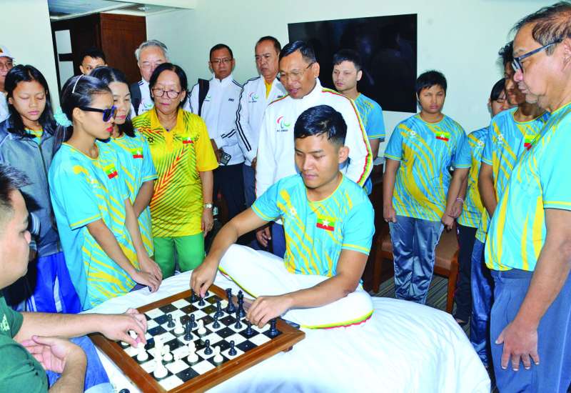 မြန်မာနိုင်ငံ မသန်စွမ်းအားကစားအဖွဲ့ချုပ်ဥက္ကဋ္ဌ ဗိုလ်ချုပ်လှမိုးနှင့် အဖွဲ့ဝင်များသည် ယနေ့တွင် 13th Asean Para Games ပြိုင်ပွဲသို့ ဝင်ရောက်ယှဉ်ပြိုင်ကြမည့် မြန်မာနိုင်ငံမသန်စွမ်းအားကစားအဖွဲ့များ၏ တည်းခိုနေထိုင်စားသောက်မှုများကို လိုက်လံကြည့်ရှုစစ်ဆေးကာ အားပေးစကားပြောကြားသည်။