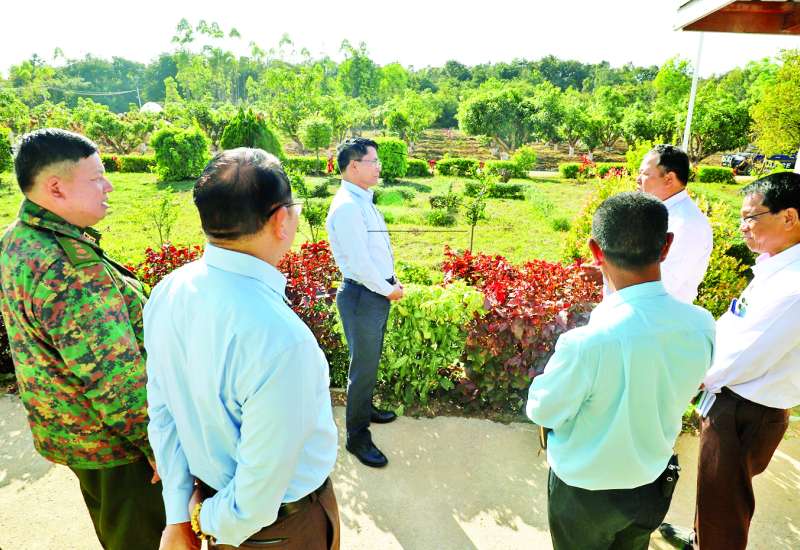စိုက်ပျိုးရေး၊ မွေးမြူရေးနှင့်ဆည်မြောင်းဝန်ကြီးဌာန ပြည်ထောင်စုဝန်ကြီး ဦးမင်းနောင်သည် ရှမ်းပြည်နယ်လုံခြုံရေးနှင့် နယ်စပ်ရေးရာဝန်ကြီးနှင့်အတူ ယနေ့နံနက်ပိုင်းတွင် တောင်ကြီးမြို့နယ် ရွှေညောင်မြို့ရှိ စိုက်ပျိုးရေးဦးစီးဌာန၏ နမ့်လတ်ဥယျာဉ်ခြံသို့ သွားရောက်ပြီး ဒေသ၏စိုက်ပျိုးထုတ်လုပ်မှုတိုးတက်ရေး၊ စိုက်ပျိုးနည်းပညာ ပြန့်ပွား ရေးလုပ်ငန်းဆောင်ရွက်နေမှုများကို ကြည့်ရှုစစ်ဆေးသည်။