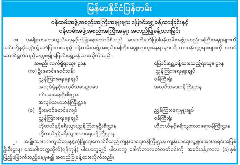 ရန်ကုန်မြို့နှင့် မန္တလေးမြို့အတွက် ရည်ညွှန်းလက်ကားဈေးနှုန်းများနှင့် ပြည်ထောင်စုနယ်မြေ နေပြည်တော်၊ တိုင်းဒေသကြီး/ပြည်နယ် မြို့တော်များအတွက် ရည်ညွှန်းလက်လီဈေးနှုန်းများ
