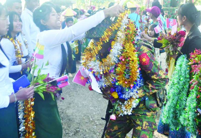 ပြည်သူများအား နှိပ်စက်ညှဉ်းပန်း၍ ဒေသဖွံ့ဖြိုးတိုးတက်မှုကို ချွတ်ခြုံကျစေသည့် အကြမ်းဖက်လုပ်ရပ်များကို လုပ်ဆောင်ခဲ့သော ကျောက်မဲမြို့ ဒေသတစ်ဝိုက်ရှိ လက်နက်ကိုင်အကြမ်းဖက်အဖွဲ့များနှင့် PDF အမည်ခံအကြမ်းဖက်အဖွဲ့များအား ရွပ်ရွပ်ချွံချွံတိုက်ပွဲဝင်၍ အဆိုပါမြို့နှင့် ဒေသတစ်ဝိုက်အား ဒေသခံပြည်သူများ၏ လက်ဝယ်သို့ ပြန်လည်အပ်နှင်းနိုင်ခဲ့သည့် အောင်ပွဲအလီလီရ ရှေ့တန်းပြန်နိုင်ငံ့ သားကောင်းတပ်မတော်သားများအား ဂုဏ်ပြုကြိုဆိုခြင်းကို ယနေ့နံနက်ပိုင်းတွင် ရှမ်းပြည်နယ် (မြောက်ပိုင်း) သီပေါမြို့နယ် နမ့်လန်ကျေးရွာအုပ်စုရှိ နယ်မြေခံတပ်ရင်း၌ ကျင်းပပြုလုပ်ရာ အရှေ့မြောက်တိုင်းစစ်ဌာနချုပ် တိုင်းမှူး ဗိုလ်မှူးချုပ် အေးမင်းဦးနှင့် တာဝန်ရှိသူများ၊ ဌာနဆိုင်ရာတာဝန်ရှိသူများ၊ တပ်မတော်သားများ၊ မိသားစုဝင်များ၊ ဆရာ ဆရာမများ၊ ကျောင်းသား ကျောင်းသူများနှင့် ဒေသခံတိုင်းရင်းသားပြည်သူများက ဝမ်းမြောက်စွာ သောင်းသောင်းဖြဖြ ကြိုဆိုဂုဏ်ပြုကြသည်။