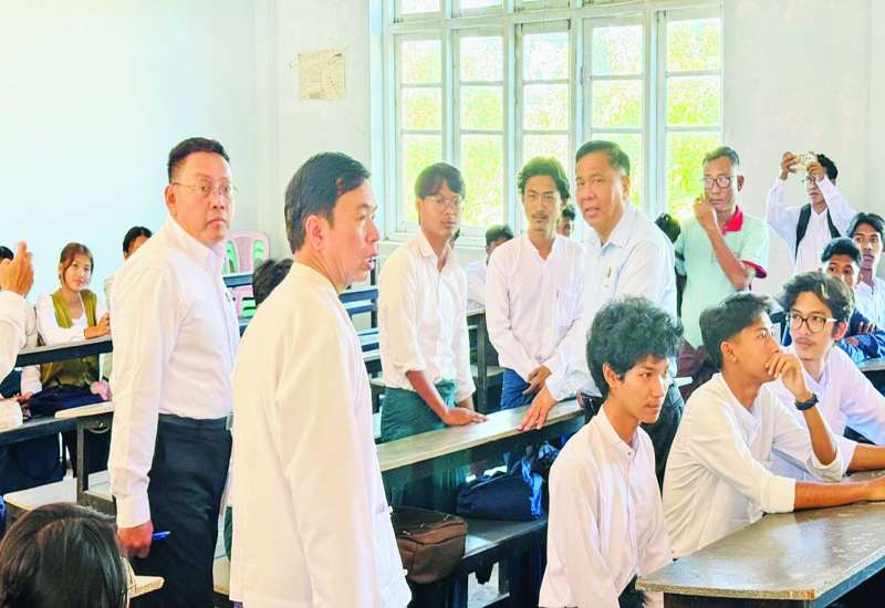 ရခိုင်ပြည်နယ် စစ်တွေမြို့သို့ ရောက်ရှိနေသော သိပ္ပံနှင့်နည်းပညာဝန်ကြီးဌာန ပြည်ထောင်စုဝန်ကြီး ဒေါက်တာမျိုးသိန်းကျော်သည် ရခိုင်ပြည်နယ် လူမှုရေးရာဝန်ကြီး ဦးသက်ထွန်း၊ တာဝန်ရှိသူများနှင့်အတူ ယနေ့မွန်းလွဲပိုင်းက ကွန်ပျူတာတက္ကသိုလ် (စစ်တွေ) ၌ နည်းပညာတက္ကသိုလ် (စစ်တွေ)၊ ကွန်ပျူတာ တက္ကသိုလ် (စစ်တွေ) နှင့် အစိုးရနည်းပညာအထက်တန်းကျောင်း (စစ်တွေ) တို့ရှိ ကျောင်းသား ကျောင်းသူများနှင့် သွားရောက်တွေ့ဆုံသည်။