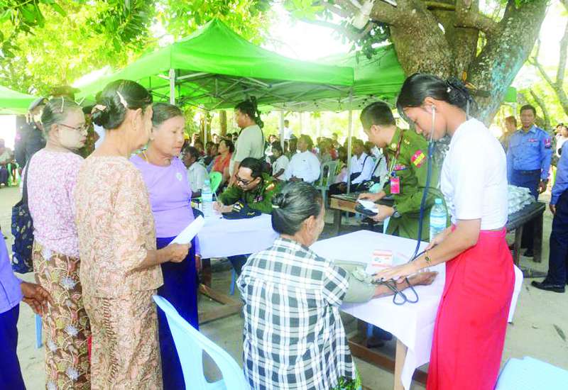 ဧရာဝတီမြစ်ကြောင်းတစ်လျှောက်ရှိ ဒေသခံပြည်သူများအား ကျန်းမာရေးစောင့်ရှောက်မှုလုပ်ငန်းများ ဆောင်ရွက်ပေးရန်အတွက် တပ်မတော်မြစ်တွင်းသွားဆေးရုံ ရေယာဉ်(ရွှေပုဇွန်)၊ မြစ်ရေယာဉ် (စကု)တို့နှင့်အတူ လိုက်ပါလာသည့် တပ်မ‌တော်မှ ပါရဂူများ၊ ဆေးမှူးများ၊ သူနာပြုများပါဝင်သော တပ်မတော်နယ်လှည့် အထူးကုဆေးအဖွဲ့သည် ယနေ့နံနက်ပိုင်းတွင် မော်လမြိုင်ကျွန်းမြို့နယ် ရွာသစ်ကျေးရွာရှိ သီရိမင်္ဂလာ မိုးကုတ်ဓမ္မရိပ်သာကျောင်းတိုက်၌ အခြေပြု၍ အဆိုပါကျေးရွာနှင့် ပတ်ဝန်းကျင်ကျေးရွာများမှ ဒေသခံပြည်သူ ၅၈၃ ဦးအား ကျန်းမာရေးစောင့်ရှောက်မှုလုပ်ငန်းများ ဆောင်ရွက်ပေးသည်။