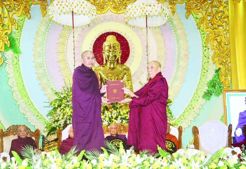 ရန်ကုန်တိုင်းဒေသကြီး ဗဟန်းမြို့နယ် အင်းယားမြိုင်လမ်းရှိ နိုင်ငံတော်သံဃမဟာနာယကအဖွဲ့ပိုင် အလယ်တောရစံပြစာသင်တိုက်အတွင်း တည်ဆောက်ပြီးစီးခဲ့သည့် ဓမ္မဝိဇယသာသနာ့ဗိမာန်တော်ကြီးအား သာသနာရေးနှင့်ယဉ်ကျေးမှုဝန်ကြီးဌာနသို့ လွှဲပြောင်းအပ်နှံပွဲကို ယနေ့မွန်းလွဲ ၂ နာရီတွင် ရန်ကုန်မြို့ ဗဟန်းမြို့နယ် ဓမ္မဝိဇယသာသနာ့ဗိမာန်တော်ကြီး၌ ကျင်းပသည်။