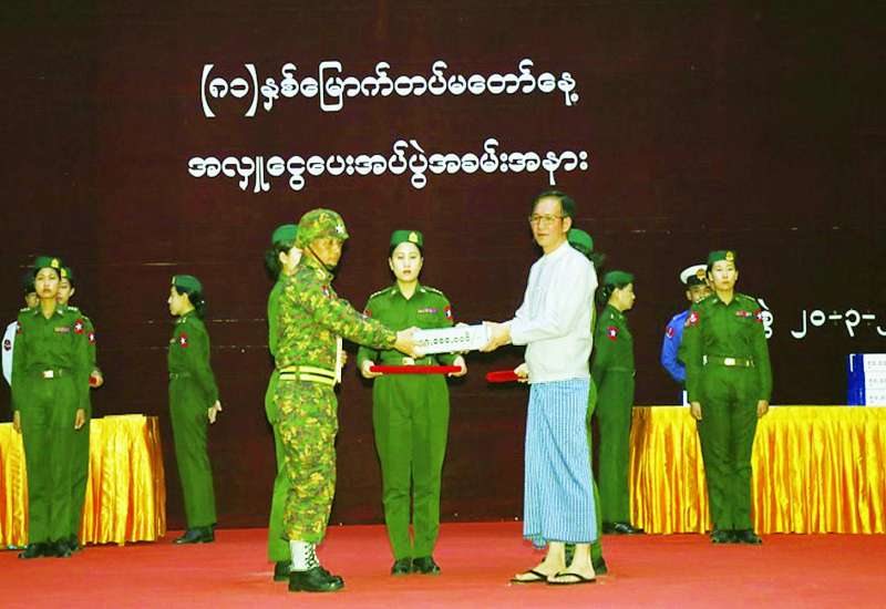 (၈၁)နှစ်မြောက်တပ်မတော်နေ့ကို ဂုဏ်ပြုကြိုဆိုသောအားဖြင့် စေတနာရှင်အလှူရှင်များက ဂုဏ်ပြုအလှူငွေများပေးအပ်လှူဒါန်းပွဲကို ယနေ့မွန်းလွဲပိုင်းတွင် နေပြည်တော်၊ စစ်ကြောရေးနှင့်တည်းခိုရေးစခန်းရှိ ဆင်ဖြူရှင်ခန်းမ၌ ကျင်းပပြုလုပ်သည်။
