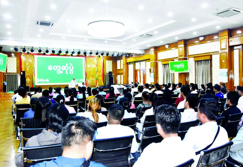 Naypyitaw State Academy မှ ဥပဒေအထူးပြု ကျောင်းသား ကျောင်းသူများအတွက် ဥပဒေပညာရပ်ဆိုင်ရာ လက်တွေ့သင်တန်းအမှတ်စဉ်(၂)သင်တန်းဖွင့်ပွဲကို ယနေ့နံနက်ပိုင်းတွင် ဥပဒေရေးရာဝန်ကြီးဌာန အစည်းအဝေးခန်းမ၌ကျင်းပရာ ပြည်ထောင်စုဝန်ကြီးနှင့် ပြည်ထောင်စုရှေ့နေချုပ် ဒေါက်တာသီတာဦး၊ ဥပဒေရေးရာဝန်ကြီးဌာနမှ ဌာနဆိုင်ရာတာဝန်ရှိသူများ၊ Naypyitaw State Academy ပါမောက္ခချုပ်၊ ဥပဒေပညာဌာန ပါမောက္ခ(ဌာနမှူး)၊ ဆရာ ဆရာမများနှင့် ကျောင်းသား ကျောင်းသူများ တက်ရောက်ကြသည်။