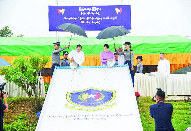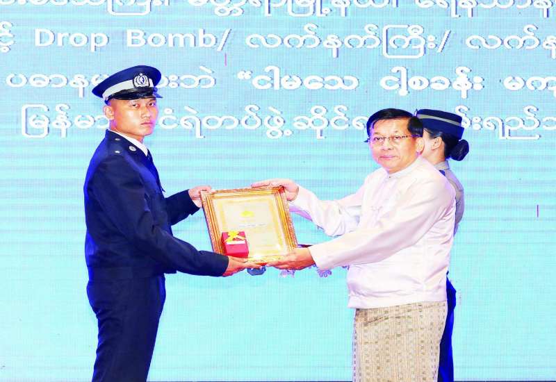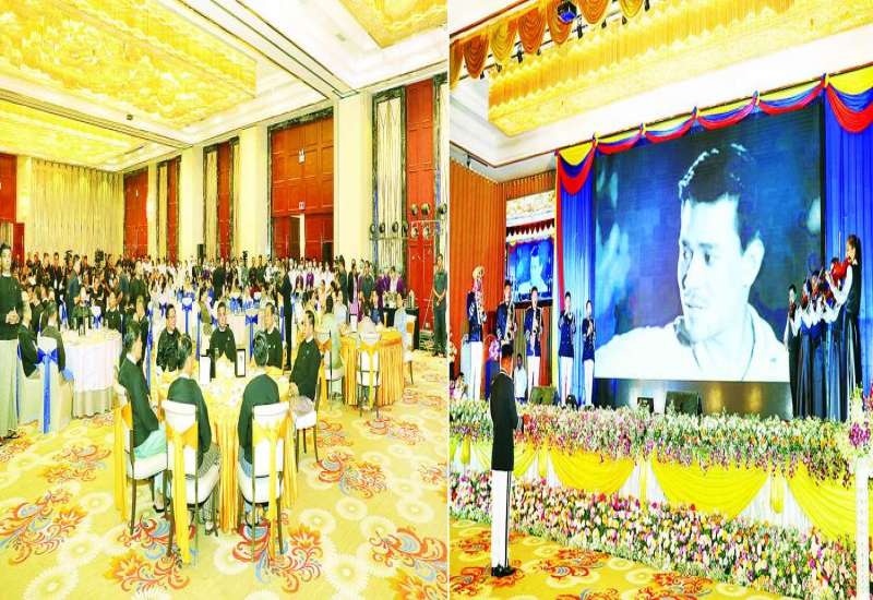 (၆၁)နှစ်မြောက် မြန်မာနိုင်ငံရဲတပ်ဖွဲ့နေ့ အထိမ်းအမှတ်ဂုဏ်ပြုညစာစားပွဲ အခမ်းအနားကို ယနေ့ညပိုင်းတွင် နေပြည်တော်ရှိ မင်္ဂလာသီရိဟိုတယ်၌ကျင်းပရာ ပြည်ထောင်စုသမ္မတ မြန်မာနိုင်ငံတော်ယာယီသမ္မတ နိုင်ငံတော်လုံခြုံရေးနှင့် အေးချမ်းသာယာရေးကော်မရှင် ဥက္ကဋ္ဌ ဗိုလ်ချုပ်မှူးကြီး မင်းအောင်လှိုင် တက်ရောက်ချီးမြှင့်သည်။