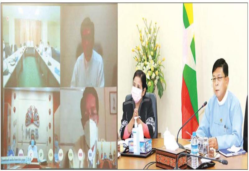 မြန်မာနိုင်ငံတော်ဗဟိုဘဏ် ဒုတိယဥက္ကဋ္ဌ ဦးဝင်းသော်နှင့် ဒေါ်သန်းသန်းဆွေတို့သည် ယနေ့ မွန်းလွဲ ၁ နာရီတွင် ကုန်စည်စီးဆင်းမှု မှန်ကန် မြန်ဆန်စေရေး ဗဟိုကော်မတီ တွဲဖက်အတွင်းရေးမှူး၊ အထူးစုံစမ်း စစ်ဆေးရေးဦးစီးဌာန ညွှန်ကြားရေးမှူးချုပ်၊ စီးပွားရေးနှင့်ကူးသန်းရောင်းဝယ်ရေး ဝန်ကြီးဌာန အမြဲတမ်းအတွင်းဝန်၊ နိုင်ငံခြားသုံးငွေစီမံ ခန့်ခွဲမှုဌာန ညွှန်ကြားရေးမှူးချုပ်၊ နိုင်ငံခြားသုံးငွေများ ရောင်းဝယ်ဖောက်ကားသည့်လုပ်ငန်း (A.D) လိုင်စင်ရဘဏ်များ၊ ကုန်သည်များနှင့် စက်မှုလက်မှု လုပ်ငန်းရှင်များ အသင်းချုပ်၊ ညီနောင်အသင်းများမှ တာဝန်ရှိသူများနှင့် ဗီဒီယိုကွန်ဖရင့်ဖြင့် အစည်းအဝေး ကျင်းပသည်။