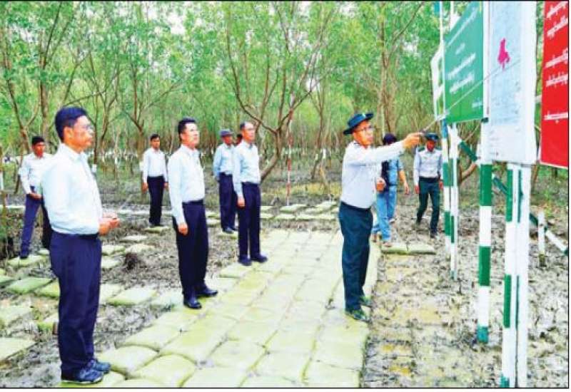 သယံဇာတနှင့်သဘာဝပတ်ဝန်းကျင်ထိန်းသိမ်းရေးဝန်ကြီးဌာန ပြည်ထောင်စုဝန်ကြီး ဦးခင်မောင်ရီသည် ဧရာဝတီတိုင်းဒေသကြီးဝန်ကြီးချုပ် ဦးတင်မောင်ဝင်း၊ တိုင်းဒေသကြီးဝန်ကြီးများ၊ တာဝန်ရှိသူများနှင့်အတူ ယမန်နေ့နံနက်ပိုင်းက ဧရာဝတီတိုင်းဒေသကြီး ဘိုကလေးမြို့နယ်ရှိ ဒီရေတောစိုက်ခင်းများ ရှင်သန်အောင်မြင်နေမှုကို ကွင်းဆင်းကြည့်ရှုသည်။