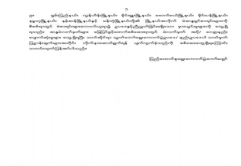နိုင်ငံတော်သို့ အခွန်ပေးဆောင်နေကြသော ကုမ္ပဏီအခွန်ထမ်းများ၏ အခွန်ပေးသွင်းရာတွင် ငွေသား/ ချက် လက်မှတ်ဖြင့် ပေးသွင်းနေမှုအစား အီလက်ထရောနစ် ငွေပေးချေမှုစနစ်များဖြင့် ပြောင်းလဲ ကျင့်သုံးသွားမည့် အစီအစဉ်ကို အသိပေးကြေညာခြင်း
