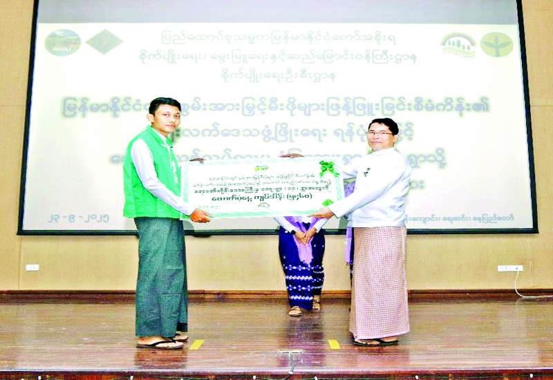 မြန်မာနိုင်ငံတွင် စွမ်းအားမြှင့်မီးဖိုများ ဖြန့်ဖြူးခြင်းစီမံကိန်းမှရရှိသော ကျေးလက်ဒေသ ဖွံ့ဖြိုးရေးရန်ပုံငွေဖြင့် ကျေးရွာ ၂၆ ရွာကို ရွေးချယ်ပြီး ရန်ပုံငွေများ ပေးအပ်ခြင်းအခမ်းအနားကို ယနေ့တွင် နေပြည်တော် ဇေယျာသီရိမြို့နယ် ရေဆင်းရှိစိုက်ပျိုးပညာပေးရေးနှင့် ကျေးလက်ဒေသဖွံ့ဖြိုးရေးသင်တန်းကျောင်း AERDTC ခန်းမ၌ ကျင်းပရာ စိုက်ပျိုးရေး၊ မွေးမြူရေးနှင့်ဆည်မြောင်းဝန်ကြီးဌာန ပြည်ထောင်စုဝန်ကြီး ဦးမင်းနောင်၊ ဒုတိယဝန်ကြီးများ၊ အမြဲတမ်းအတွင်းဝန်နှင့် ညွှန်ကြားရေးမှူးချုပ်များ၊ ဌာနဆိုင်ရာတာဝန်ရှိသူများ၊ ကျေးရွာခေါင်းဆောင်များ တက်ရောက်ကြသည်။