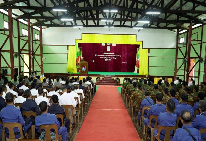 နယ်စပ်ရေးရာဝန်ကြီးဌာန၏ (၃၃) နှစ်မြောက် နှစ်ပတ်လည်နေ့အထိမ်းအမှတ် ဂုဏ်ပြုဆုချီးမြှင့်ပွဲ အခမ်းအနားကို ယနေ့မွန်းလွဲပိုင်းတွင် နယ်စပ်ရေးရာဝန်ကြီးဌာန ဧရာဝတီခန်းမ၌ ကျင်းပရာ နယ်စပ်ရေးရာဝန်ကြီးဌာန ပြည်ထောင်စုဝန်ကြီး ဒုတိယဗိုလ်ချုပ်ကြီး ရာပြည့်နှင့် ဇနီး၊ ဒုတိယဝန်ကြီး ဗိုလ်ချုပ်ဖြိုးသန့်နှင့် ဇနီး၊ အမြဲတမ်းအတွင်းဝန်နှင့် ဇနီး၊ ညွှန်ကြားရေးမှူးချုပ်များနှင့် ဇနီးများ၊ ဝန်ကြီးရုံးနှင့် ဦးစီးဌာနများမှ အရာထမ်း၊ အမှုထမ်းများနှင့် ဂုဏ်ပြုဆုရရှိသည့် ဝန်ထမ်းများ တက်ရောက်သည်။