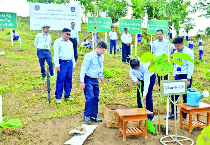 ၂၀၂၄-၂၀၂၅ ခုနှစ်တွင် စိုက်ပျိုးခဲ့သော ရှင်သန်ဖြစ်ထွန်းမှုအားနည်းသည့် အပင်များနေရာတွင် ရတနာတန်းဝင်ကျွန်းပင်များ အစားထိုးစိုက်ပျိုးခြင်းနှင့် ပေါင်းမြက်များ ရှင်းလင်းခြင်းကို ယနေ့နံနက်ပိုင်းတွင် နေပြည်တော်ဥတ္တရသီရိမြို့နယ်ရှိ ဗဟိုသင်တန်းကျောင်းဝင်း၌ကျင်းပရာ လျှပ်စစ်စွမ်းအားဝန်ကြီးဌာန ပြည်ထောင်စုဝန်ကြီးဦးဉာဏ်ထွန်း၊ ပြည်ထောင်စုဝန်ကြီးရုံး၊ ဦးစီးဌာနနှင့် လုပ်ငန်းတို့မှ ဌာနဆိုင်ရာတာဝန်ရှိသူများနှင့် အရာထမ်း၊ အမှုထမ်းများ တက်ရောက်ကြသည်။