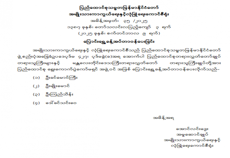 ပြောင်းရွှေ့ခန့်အပ်တာဝန်ပေးခြင်း