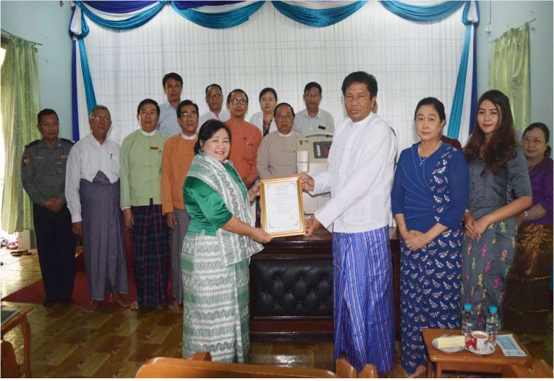 COVID-19 ရောဂါ ကာကွယ်ရေးနှင့် ကုသရေးလုပ်ငန်းများ ဆောင်ရွက်နိုင်ရန် သန်လျင်မြို့ အထွေထွေ ရောဂါကုဆေးရုံကြီးသို့ ငွေကျပ် ၁၁၁ သိန်းကျော်တန်ဖိုးရှိ ဆေးရုံသုံး ပစ္စည်း ၉ မျိုး လှူဒါန်းပွဲကို သီရိသုဓမ္မ မဏိဇောတဓရ ဦးဇော်ဝင်း(ဥက္ကဋ္ဌ၊ ဇော်ထက်ပိုင် အင်ဂျင်နီယာ နှင့် ဆောက်လုပ်ရေး ကုမ္ပဏီအုပ်စု) + ဒေါ်မိမိတင် (ချမ်းမြေ့မေတ္တာအထူးကုဆေးရုံ)၊ သမီး မအိမွန်မွန် (CEO ချမ်းမြေ့မေတ္တာ အထူးကုဆေးရုံ - သန်လျင်)တို့က ဆေးရုံအုပ်ကြီး ဒေါက်တာချိုချိုလွင်နှင့် တာဝန်ရှိသူများထံ ပေးအပ်လှူဒါန်းသည်။