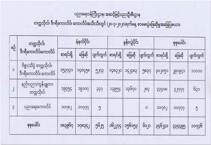 ၂၀၂၀ ပြည့်နှစ် တက္ကသိုလ်ဝင်စာမေးပွဲ နဝမနေ့အဖြစ် သမိုင်းဘာသာရပ်ကို ယနေ့တွင် ဖြေဆိုကြရာ နိုင်ငံခြားစာစစ်ဌာန ၅ ခုနှင့် မြန်မာတစ်နိုင်ငံလုံးရှိ စာစစ်ဌာန ၁၅၅၅ ခု၊ စာစစ် ဌာနစုစုပေါင်း ၁၅၆၀ တွင် ဖြေဆိုသူပေါင်း ၁၅၇၉၇၃ ဦးရှိကြောင်း ပညာရေး ဝန်ကြီးဌာနမှ သိရသည်။