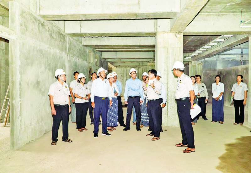 ဆောက်လုပ်ရေးဝန်ကြီးဌာန ဒုတိယဝန်ကြီး ဦးမျိုးမြင့်သည် တာဝန်ရှိသူများနှင့်အတူ ယနေ့နံနက်ပိုင်းတွင် ရန်ကုန်အရှေ့ပိုင်း ခရိုင်ဒဂုံမြို့သစ်(ဆိပ်ကမ်း) မြို့နယ်၌ အဆောက်အဦဦးစီးဌာန အဆောက်အဦအထူးအဖွဲ့ (၁) မှ တာဝန်ယူတည်ဆောက်လျက်ရှိသော အမျိုးသားကင်ဆာရောဂါကုသရေးဌာန (Oncology Unit) အဆောက်အအုံဆောက်လုပ်ပြီးစီးမှုအခြေအနေများကို ကြည့်ရှုစစ်ဆေးသည်။