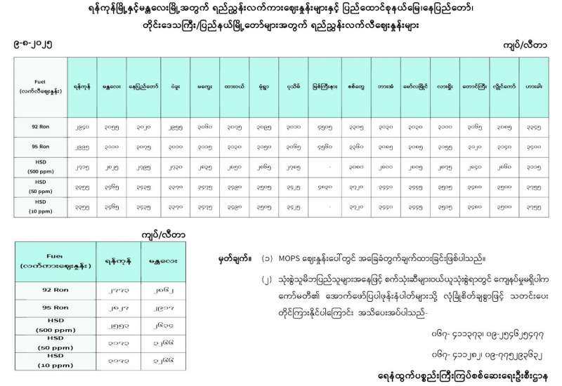 ရန်ကုန်မြို့နှင့် မန္တလေးမြို့အတွက် ရည်ညွှန်းလက်ကားဈေးနှုန်းများနှင့် ပြည်ထောင်စုနယ်မြေ နေပြည်တော်၊ တိုင်းဒေသကြီး/ပြည်နယ် မြို့တော်များအတွက် ရည်ညွှန်းလက်လီဈေးနှုန်းများ