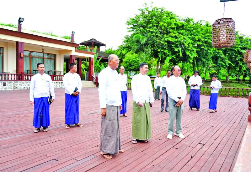ပြည်ထောင်စုနယ်မြေ နေပြည်တော်အတွင်းရှိ ဟိုတယ်နှင့်ခရီးသွားလုပ်ငန်းများ ဖွံ့ဖြိုးတိုးတက်လာစေရေး၊ ခရီးသွားဆွဲဆောင်ရာနေရာများသို့ ဧည့်သည်များ ပိုမိုလာရောက်လည်ပတ်ရေး အကောင်အထည်ဖော်ဆောင်ရွက်လျက်ရှိရာ အားကစားနှင့်လူငယ်ရေးရာဝန်ကြီးဌာနနှင့် ဟိုတယ်နှင့်ခရီးသွားလာရေးဝန်ကြီးဌာန ပြည်ထောင်စုဝန်ကြီး Jeng Phang နော်တောင်သည် ဒုတိယဝန်ကြီး ဦးဖြိုးဇော်စိုး၊ တာဝန်ရှိသူများနှင့်အတူ ယနေ့နံနက်ပိုင်းက ပြည်ထောင်စုနယ်မြေ နေပြည်တော် ဒဏ္ခိဏသီရိမြို့နယ် ဟိုတယ်ဇုန်(၁) ရာဇသင်္ဂဟလမ်းမကြီးရှိ ဟိုတယ်များမှ ငလျင်ဒဏ်သင့် ဟိုတယ်အဆောက်အအုံ၊ အခန်းများနှင့် ခန်းမများ ပြင်ဆင်ဆောင်ရွက်နေမှု၊ ပြင်ဆင်ပြီး ဟိုတယ်များ၌ ဧည့်သည်များ လက်ခံဝန်ဆောင်မှုပေးနေမှုနှင့် ဟိုတယ်အင်္ဂါရပ်နှင့်အညီ သန့်ရှင်းသာယာလှပရေး ဆောင်ရွက်ထားရှိမှုတို့ကို ကြည့်ရှုစစ်ဆေးသည်။
