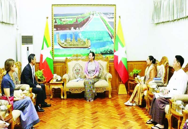 ပညာရေးဝန်ကြီးဌာန ပြည်ထောင်စုဝန်ကြီး ဒေါက်တာချောချောစိန်သည် ကုလသမဂ္ဂကလေးများရန်ပုံငွေအဖွဲ့ (United Nations Children’s Fund - UNICEF) ၏ မြန်မာနိုင်ငံဆိုင်ရာ ဌာနေကိုယ်စားလှယ် Mr.Yasumasa Kimura အား ယနေ့မွန်းလွဲပိုင်းတွင် နေပြည်တော်ရှိ အဆိုပါဝန်ကြီးဌာန အစည်းအဝေးခန်းမ၌ လက်ခံတွေ့ဆုံသည်။